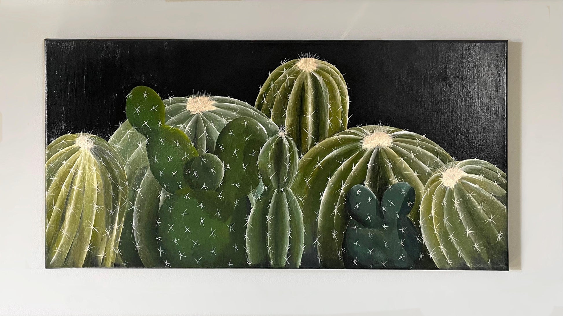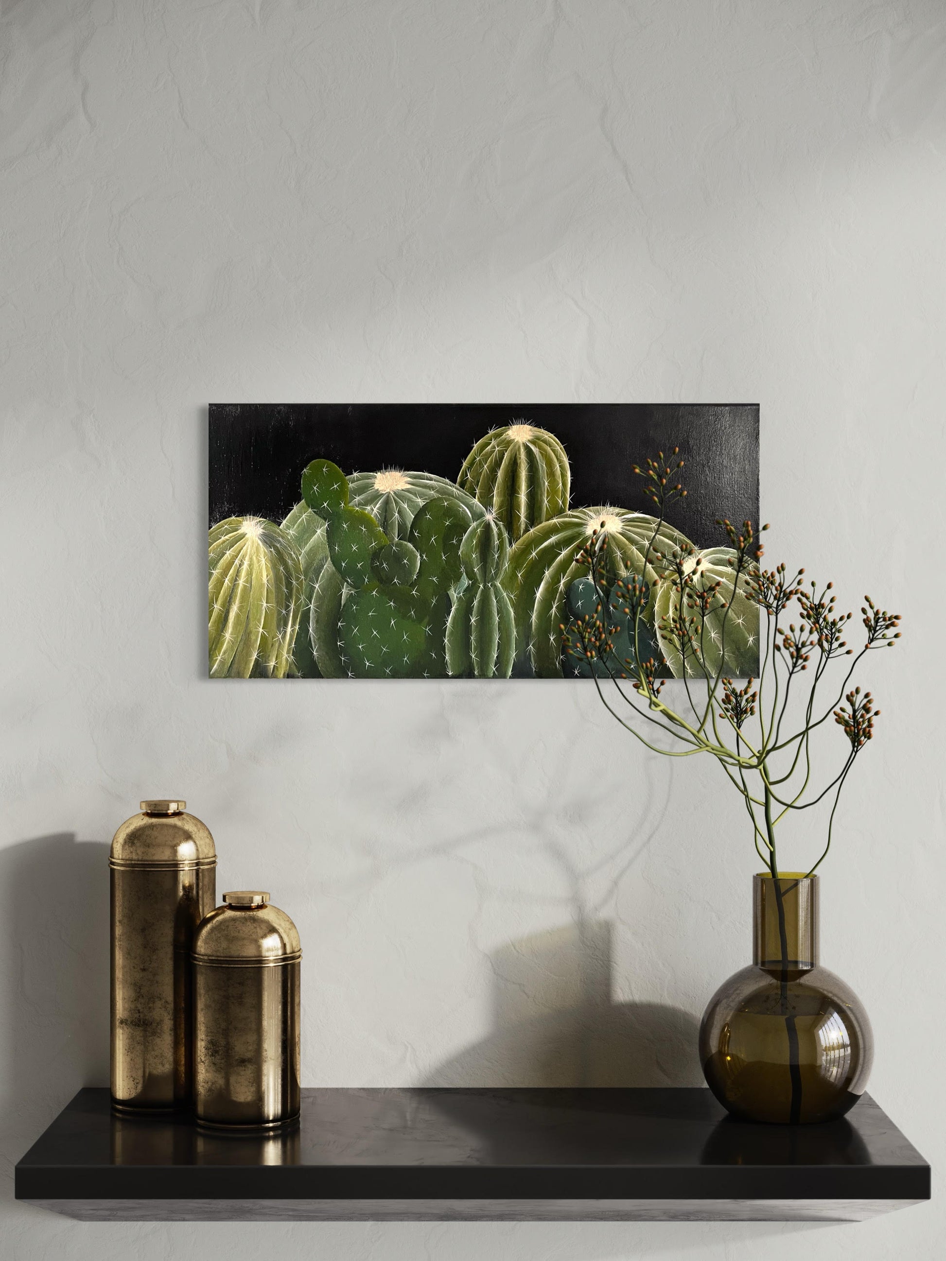 Enhance your space with the vibrant colors and unique texture of Cacti Friends. This stylish painting showcases a collection of cacti, adding a touch of natural beauty to any room. With its bold colors and expertly-crafted design, Cacti Friends is the perfect piece for cacti enthusiasts and art lovers alike.