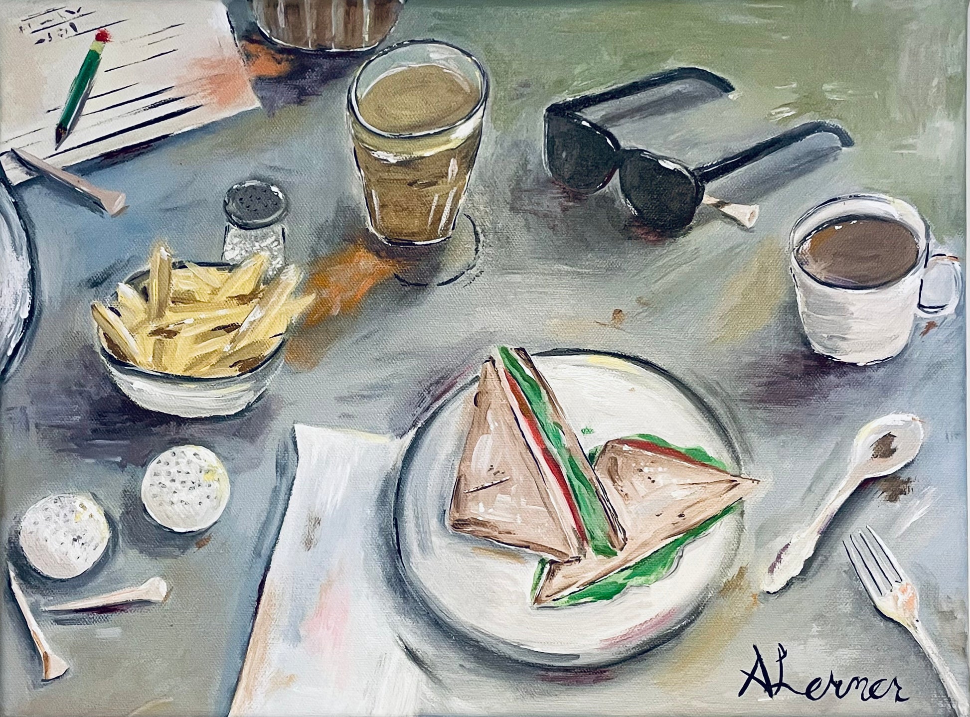 The Clubhouse is a fun piece for a smaller space in your kitchen. This table top painting will remind you of the feelings you get on the golf course and getting a quick bite to eat with your friend after the round! It's beauty, relaxation, camaraderie on a canvas.